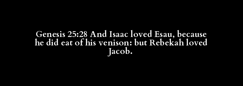 Genesis 25:28 And Isaac loved Esau, because he did eat of his venison: but Rebekah loved Jacob.