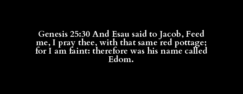 Genesis 25:30 And Esau said to Jacob, Feed me, I pray thee, with that same red pottage; for I am faint: therefore was his name called Edom.