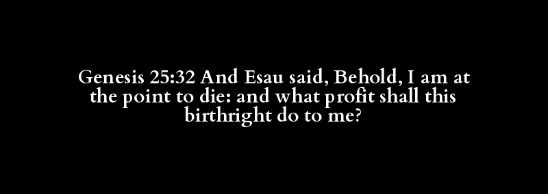 Genesis 25:32 And Esau said, Behold, I am at the point to die: and what profit shall this birthright do to me?