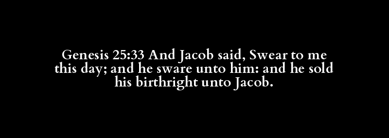 Genesis 25:33 And Jacob said, Swear to me this day; and he sware unto him: and he sold his birthright unto Jacob.