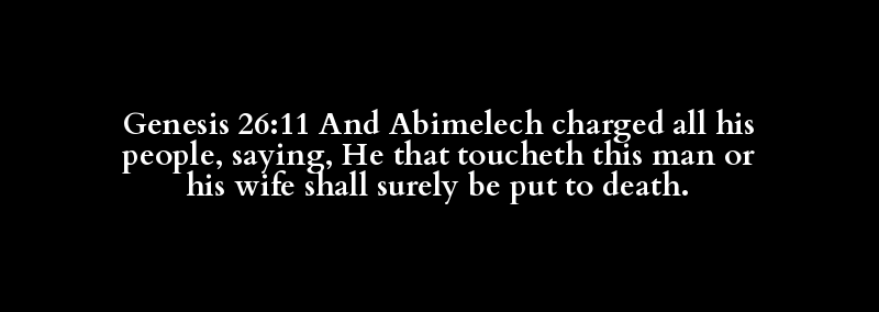 Genesis 26:11 And Abimelech charged all his people, saying, He that toucheth this man or his wife shall surely be put to death.