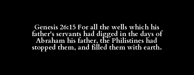 Genesis 26:15 For all the wells which his father's servants had digged in the days of Abraham his father, the Philistines had stopped them, and filled them with earth.