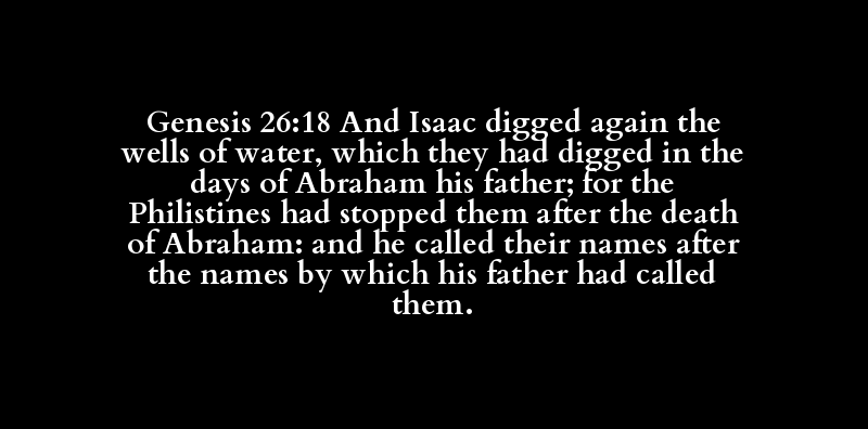 Genesis 26:18 And Isaac digged again the wells of water, which they had digged in the days of Abraham his father; for the Philistines had stopped them after the death of Abraham: and he called their names after the names by which his father had called them.