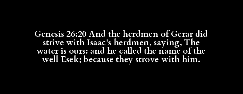 Genesis 26:20 And the herdmen of Gerar did strive with Isaac's herdmen, saying, The water is ours: and he called the name of the well Esek; because they strove with him.