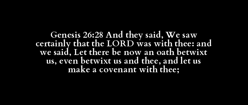Genesis 26:28 And they said, We saw certainly that the LORD was with thee: and we said, Let there be now an oath betwixt us, even betwixt us and thee, and let us make a covenant with thee;