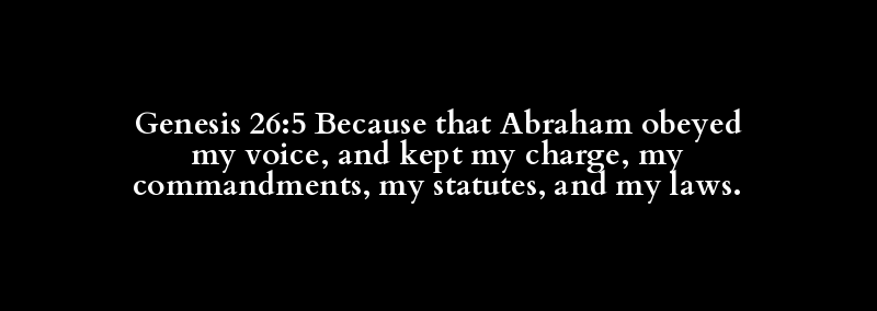 Genesis 26:5 Because that Abraham obeyed my voice, and kept my charge, my commandments, my statutes, and my laws.