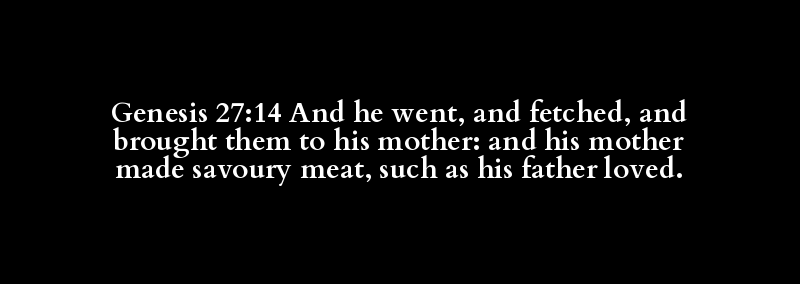 Genesis 27:14 And he went, and fetched, and brought them to his mother: and his mother made savoury meat, such as his father loved.