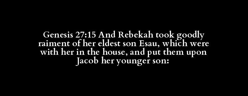 Genesis 27:15 And Rebekah took goodly raiment of her eldest son Esau, which were with her in the house, and put them upon Jacob her younger son: