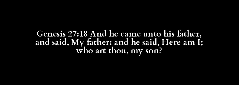 Genesis 27:18 And he came unto his father, and said, My father: and he said, Here am I; who art thou, my son?
