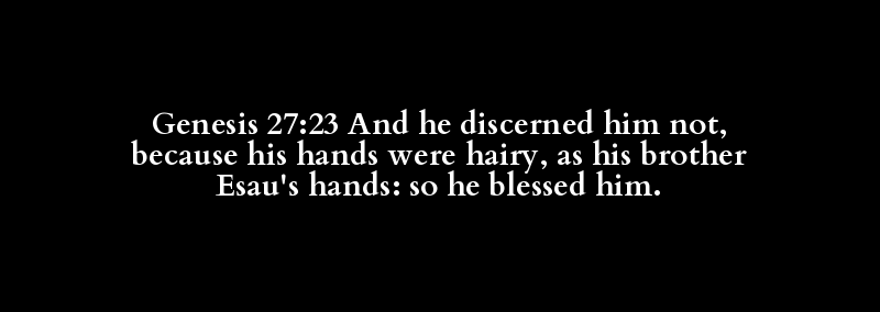 Genesis 27:23 And he discerned him not, because his hands were hairy, as his brother Esau's hands: so he blessed him.