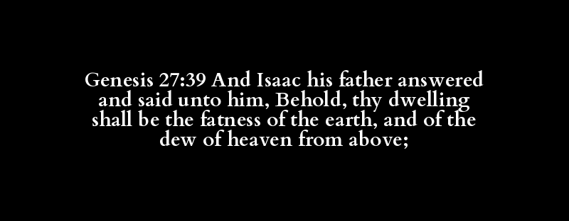 Genesis 27:39 And Isaac his father answered and said unto him, Behold, thy dwelling shall be the fatness of the earth, and of the dew of heaven from above;