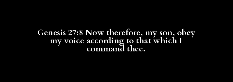 Genesis 27:8 Now therefore, my son, obey my voice according to that which I command thee.