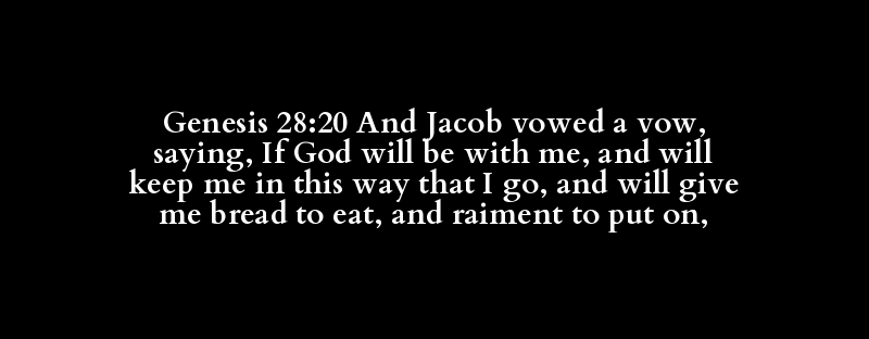 Genesis 28:20 And Jacob vowed a vow, saying, If God will be with me, and will keep me in this way that I go, and will give me bread to eat, and raiment to put on,