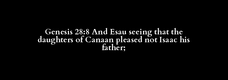 Genesis 28:8 And Esau seeing that the daughters of Canaan pleased not Isaac his father;