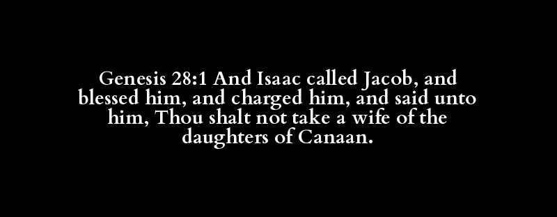 Genesis 28:1 And Isaac called Jacob, and blessed him, and charged him, and said unto him, Thou shalt not take a wife of the daughters of Canaan.