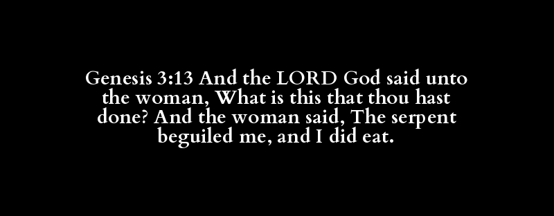 Genesis 3:13 And the LORD God said unto the woman, What is this that thou hast done? And the woman said, The serpent beguiled me, and I did eat.