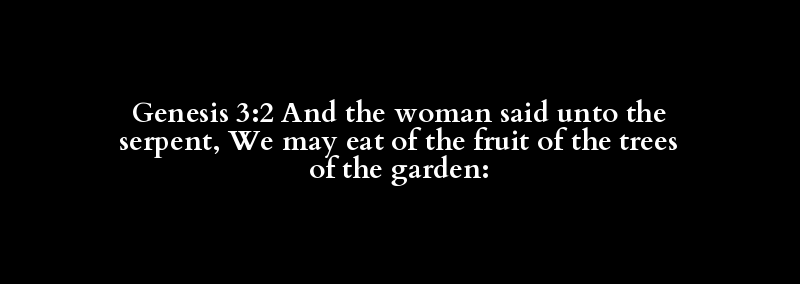 Genesis 3:2 And the woman said unto the serpent, We may eat of the fruit of the trees of the garden: