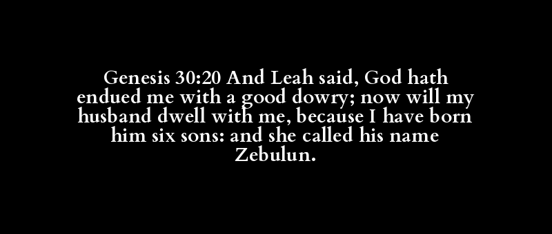 Genesis 30:20 And Leah said, God hath endued me with a good dowry; now will my husband dwell with me, because I have born him six sons: and she called his name Zebulun.
