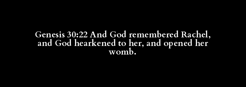 Genesis 30:22 And God remembered Rachel, and God hearkened to her, and opened her womb.