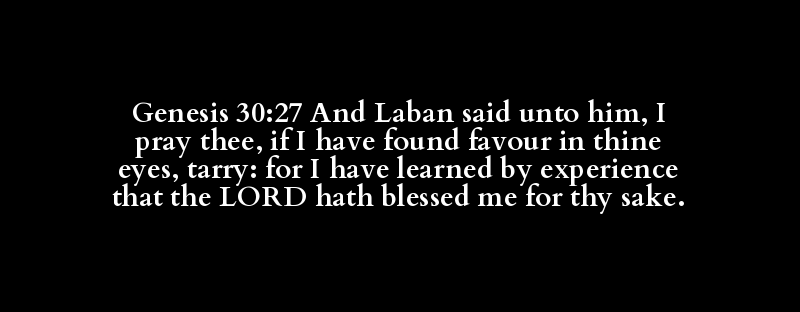 Genesis 30:27 And Laban said unto him, I pray thee, if I have found favour in thine eyes, tarry: for I have learned by experience that the LORD hath blessed me for thy sake.