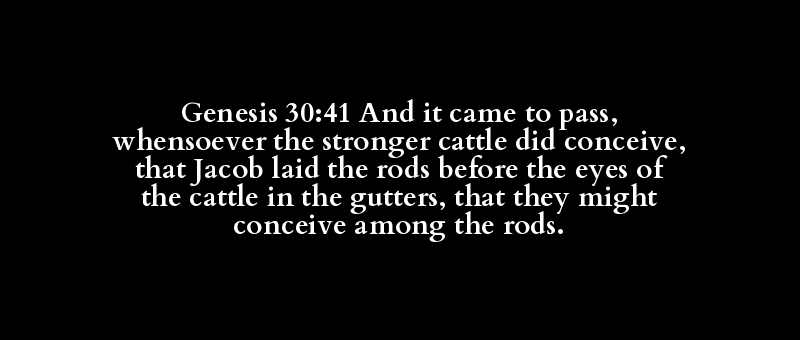 Genesis 30:41 And it came to pass, whensoever the stronger cattle did conceive, that Jacob laid the rods before the eyes of the cattle in the gutters, that they might conceive among the rods.