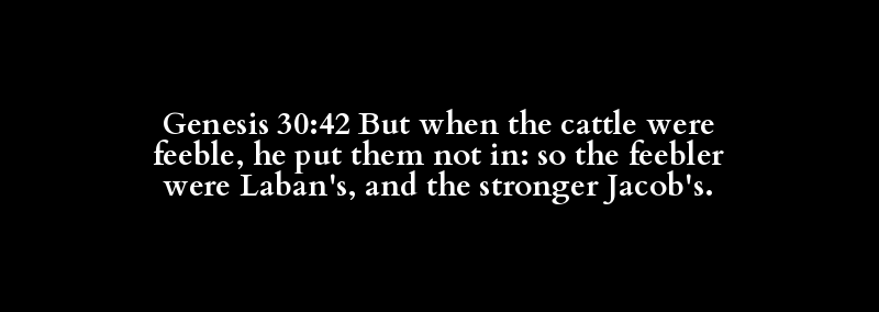 Genesis 30:42 But when the cattle were feeble, he put them not in: so the feebler were Laban's, and the stronger Jacob's.