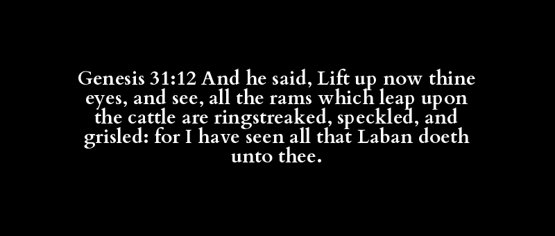 Genesis 31:12 And he said, Lift up now thine eyes, and see, all the rams which leap upon the cattle are ringstreaked, speckled, and grisled: for I have seen all that Laban doeth unto thee.