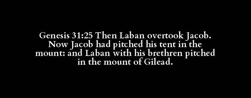 Genesis 31:25 Then Laban overtook Jacob. Now Jacob had pitched his tent in the mount: and Laban with his brethren pitched in the mount of Gilead.