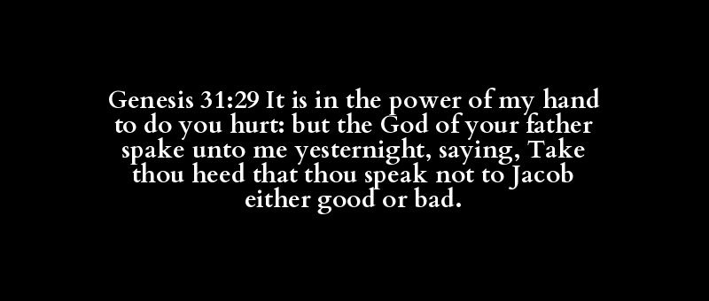 Genesis 31:29 It is in the power of my hand to do you hurt: but the God of your father spake unto me yesternight, saying, Take thou heed that thou speak not to Jacob either good or bad.