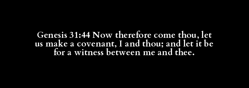 Genesis 31:44 Now therefore come thou, let us make a covenant, I and thou; and let it be for a witness between me and thee.