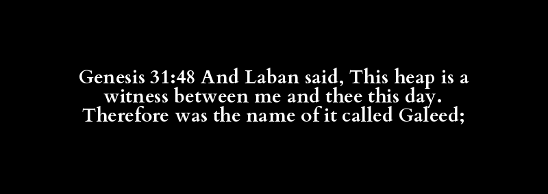 Genesis 31:48 And Laban said, This heap is a witness between me and thee this day. Therefore was the name of it called Galeed;