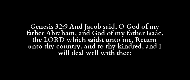 Genesis 32:9 And Jacob said, O God of my father Abraham, and God of my father Isaac, the LORD which saidst unto me, Return unto thy country, and to thy kindred, and I will deal well with thee: