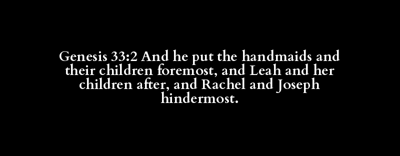 Genesis 33:2 And he put the handmaids and their children foremost, and Leah and her children after, and Rachel and Joseph hindermost.