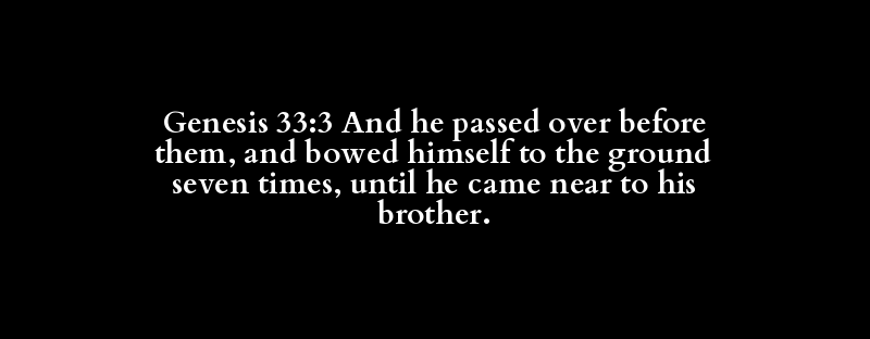Genesis 33:3 And he passed over before them, and bowed himself to the ground seven times, until he came near to his brother.
