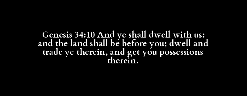 Genesis 34:10 And ye shall dwell with us: and the land shall be before you; dwell and trade ye therein, and get you possessions therein.
