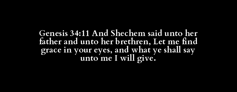 Genesis 34:11 And Shechem said unto her father and unto her brethren, Let me find grace in your eyes, and what ye shall say unto me I will give.