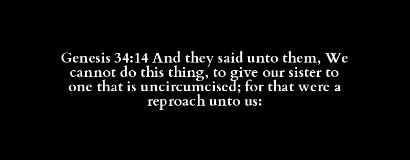 Genesis 34:14 And they said unto them, We cannot do this thing, to give our sister to one that is uncircumcised; for that were a reproach unto us: