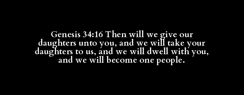 Genesis 34:16 Then will we give our daughters unto you, and we will take your daughters to us, and we will dwell with you, and we will become one people.