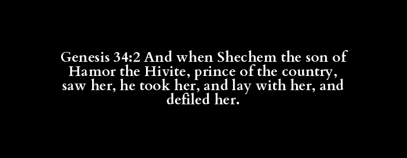 Genesis 34:2 And when Shechem the son of Hamor the Hivite, prince of the country, saw her, he took her, and lay with her, and defiled her.