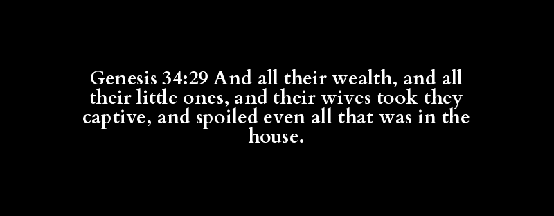 Genesis 34:29 And all their wealth, and all their little ones, and their wives took they captive, and spoiled even all that was in the house.
