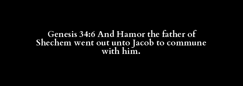 Genesis 34:6 And Hamor the father of Shechem went out unto Jacob to commune with him.