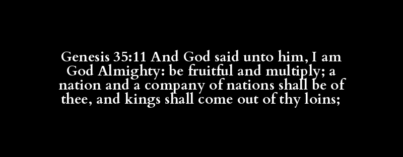 Genesis 35:11 And God said unto him, I am God Almighty: be fruitful and multiply; a nation and a company of nations shall be of thee, and kings shall come out of thy loins;
