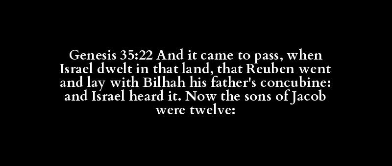 Genesis 35:22 And it came to pass, when Israel dwelt in that land, that Reuben went and lay with Bilhah his father's concubine: and Israel heard it. Now the sons of Jacob were twelve: