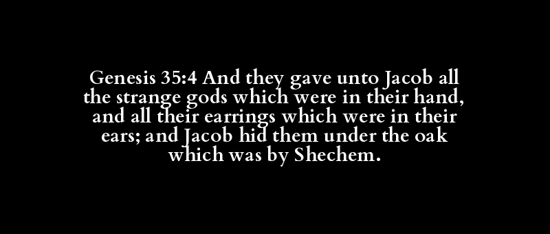Genesis 35:4 And they gave unto Jacob all the strange gods which were in their hand, and all their earrings which were in their ears; and Jacob hid them under the oak which was by Shechem.