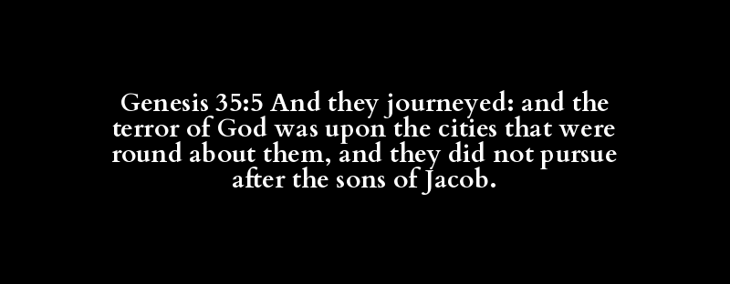 Genesis 35:5 And they journeyed: and the terror of God was upon the cities that were round about them, and they did not pursue after the sons of Jacob.