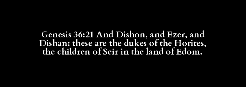 Genesis 36:21 And Dishon, and Ezer, and Dishan: these are the dukes of the Horites, the children of Seir in the land of Edom.