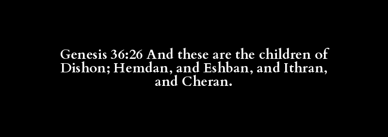 Genesis 36:26 And these are the children of Dishon; Hemdan, and Eshban, and Ithran, and Cheran.