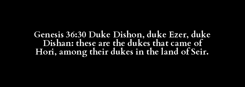 Genesis 36:30 Duke Dishon, duke Ezer, duke Dishan: these are the dukes that came of Hori, among their dukes in the land of Seir.