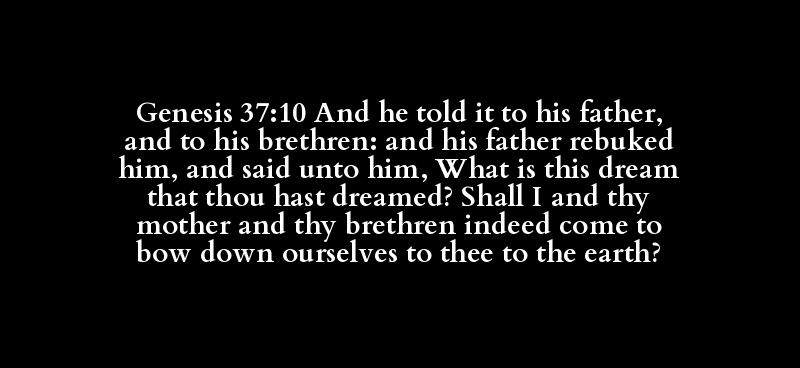 Genesis 37:10 And he told it to his father, and to his brethren: and his father rebuked him, and said unto him, What is this dream that thou hast dreamed? Shall I and thy mother and thy brethren indeed come to bow down ourselves to thee to the earth?