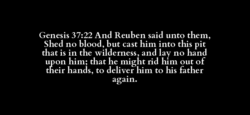 Genesis 37:22 And Reuben said unto them, Shed no blood, but cast him into this pit that is in the wilderness, and lay no hand upon him; that he might rid him out of their hands, to deliver him to his father again.